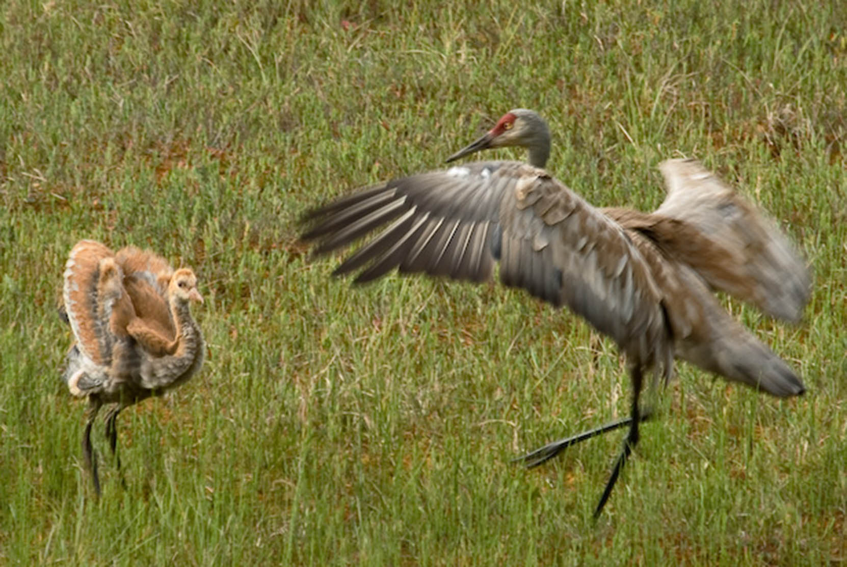 Our search of the scientific literature has yielded no direct observations of Sandhill colt siblicide in nature. There are well-documented reports of colts killing one another in wildlife farms, where crane eggs are hatched in an incubator and the colts raised packed together(like baby chickens) in dense flocks. But such hatchery flocks of crane colts are unnatural. In the wild, crane colts are singlets or in pairs.